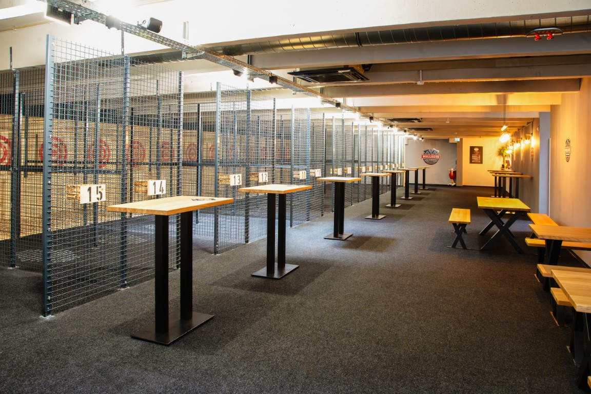 In der Anlage erwarten euch 16 Bahnen! Ob zu zweit oder in Gruppen – stellt Eure Axtwurf-Fähigkeiten auf die Probe und zeigt, wer das Bullseye trifft!