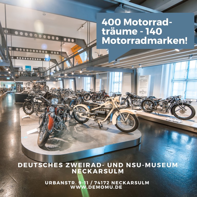 Erleben Sie die Geschichte der Zweiräder und entdecken Sie die Entwicklung der berühmten NSU-Marken. Mit zahlreichen Exponaten und historischen Fahrzeugen ist es ein faszinierendes Erlebnis für Technik- und Motorsportfans!